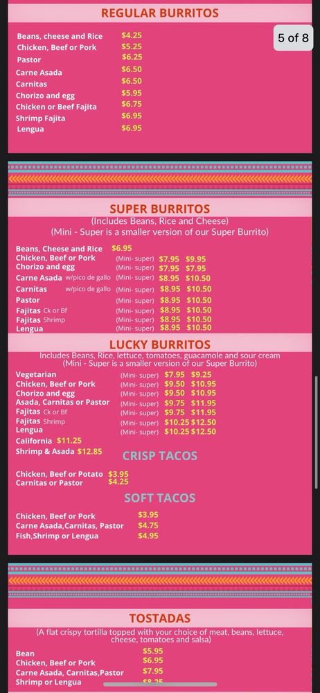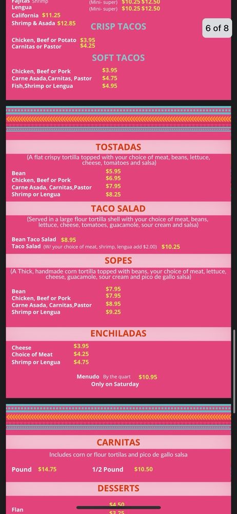 Full order. Crispy chicken, beef, or pork. Soft tacos- chicken, beef, or pork. Soft tacos- asada, carne or pastor.