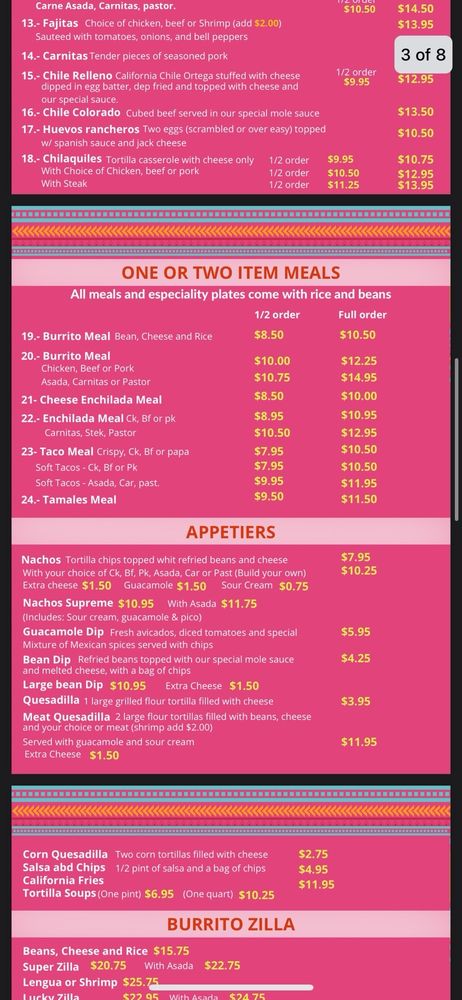Half order. Chicken, beef or pork, asada, carnitas or pastor.